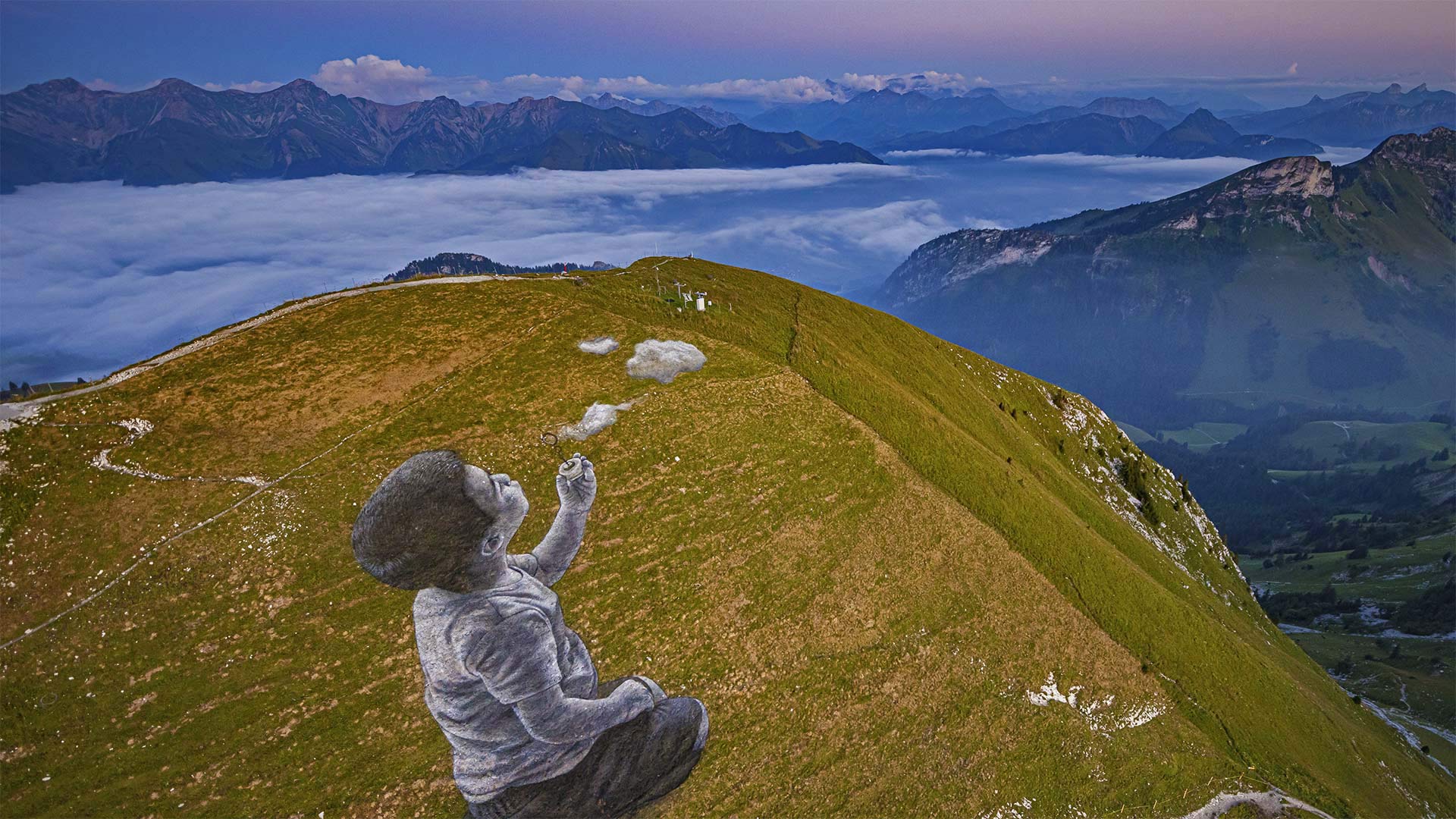'A New Breath' by artist Saype in Moléson-sur-Gruyères